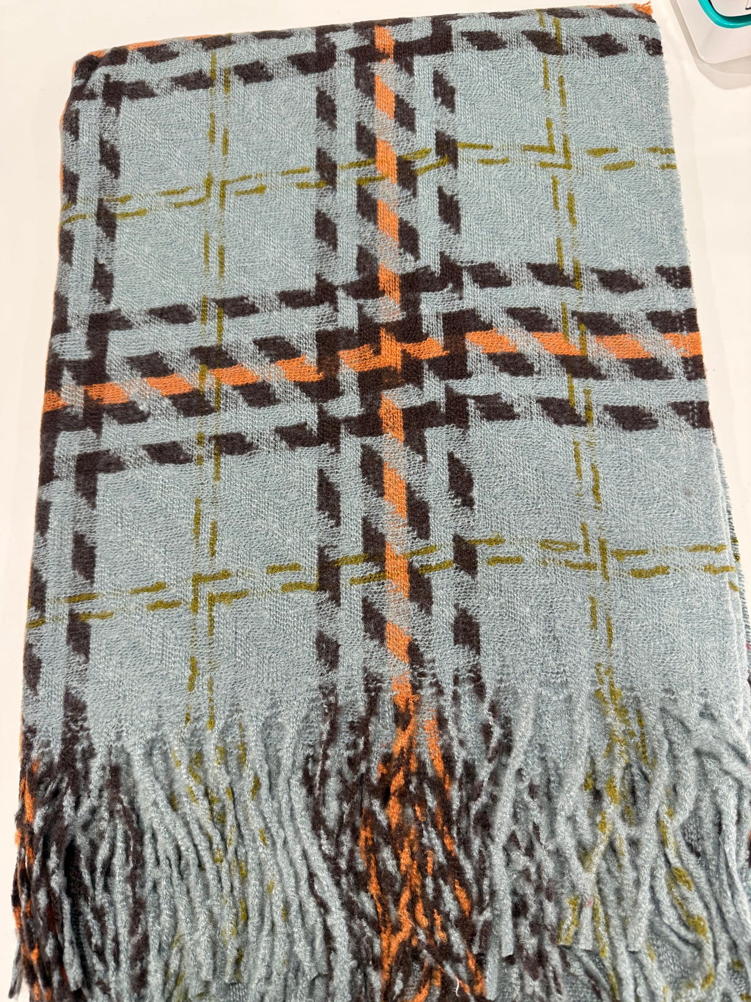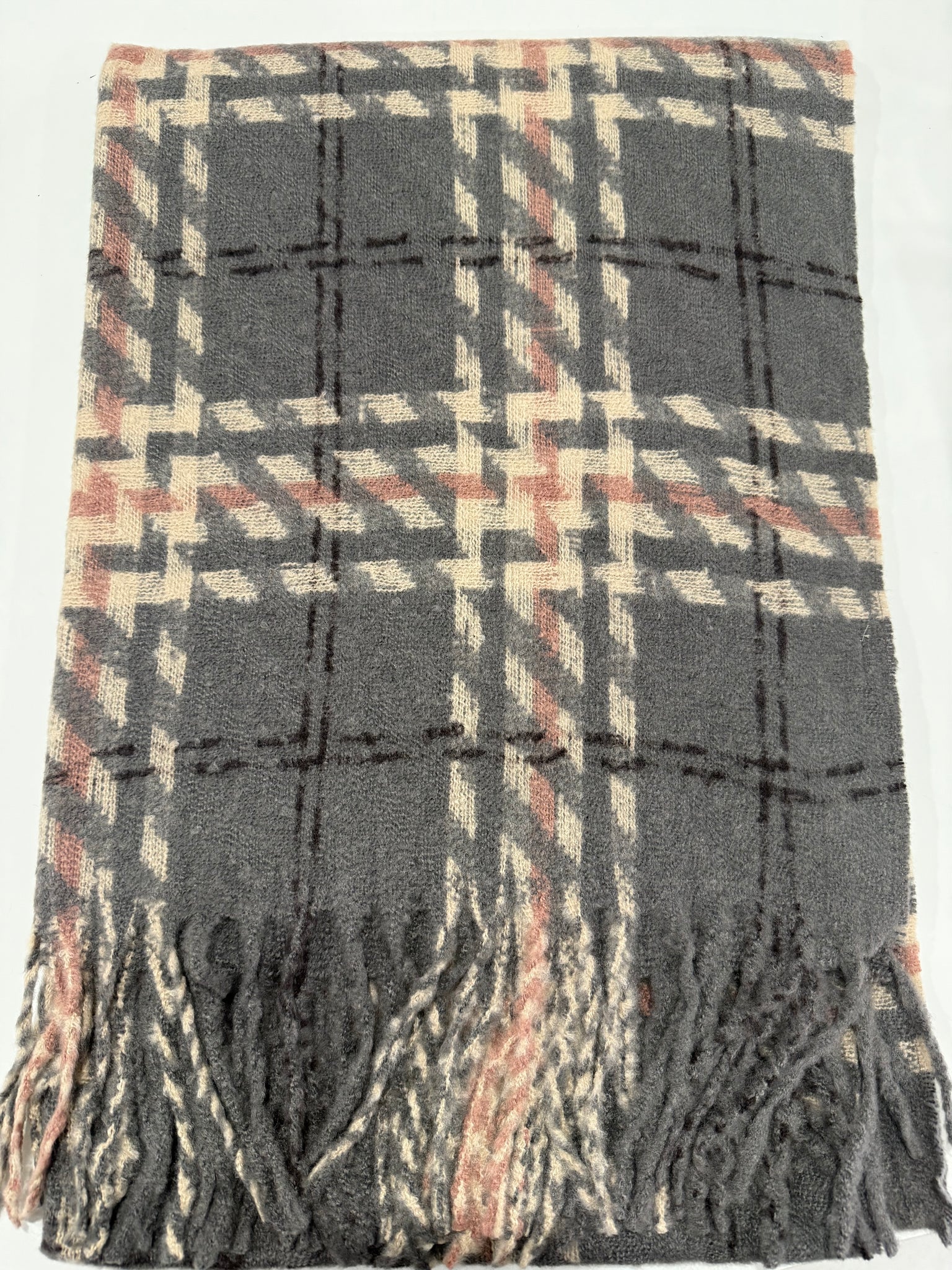 Beautiful large check print and tassel fringe.