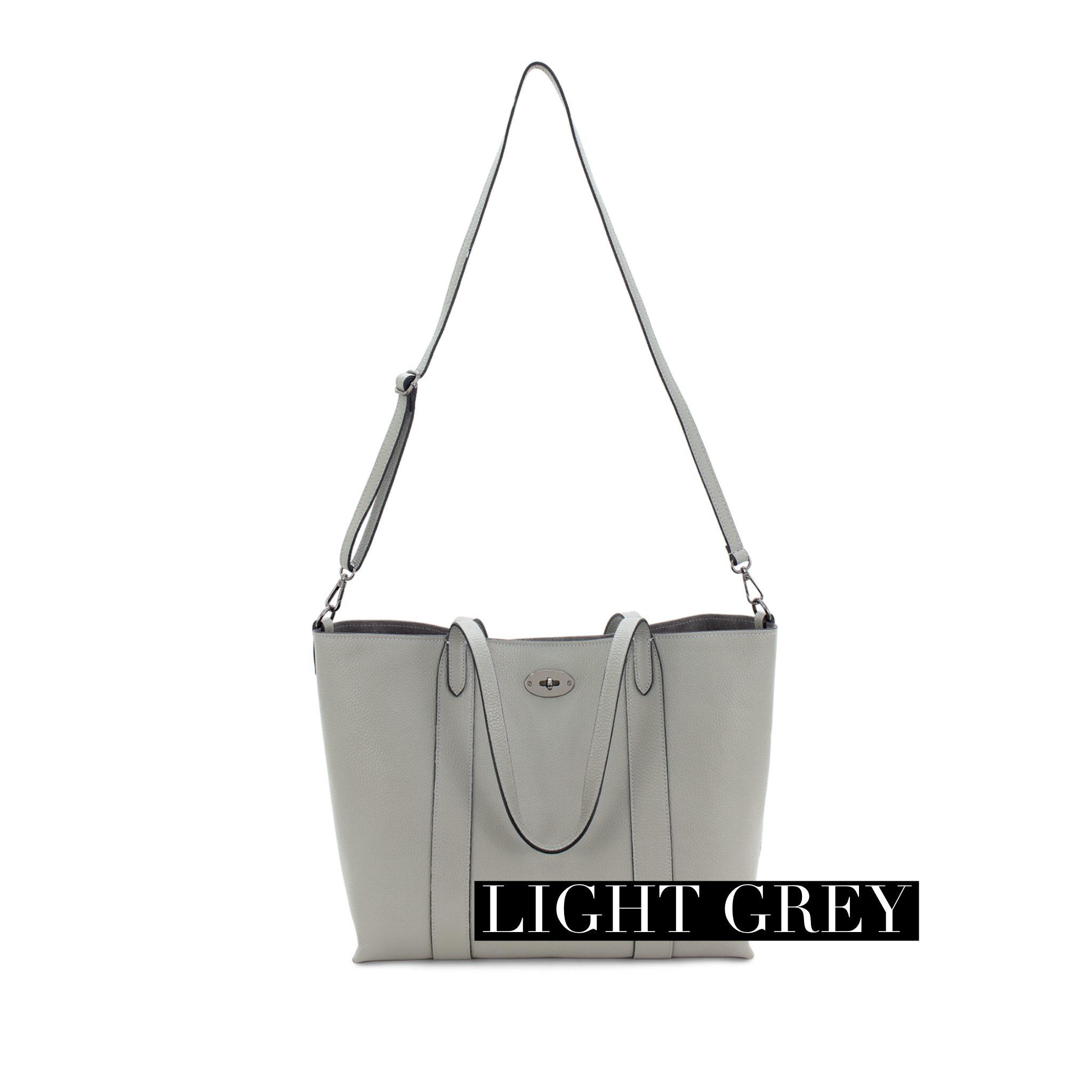 - Shoulder strap and detachable crossbody strap.