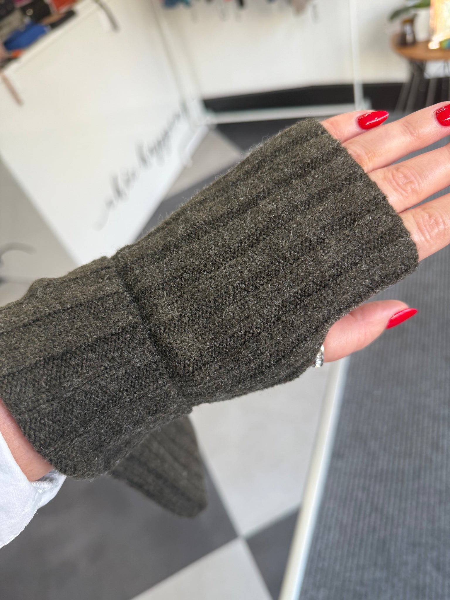 New fingerless gloves, similar to our cable knit but now in ribbed knit style.