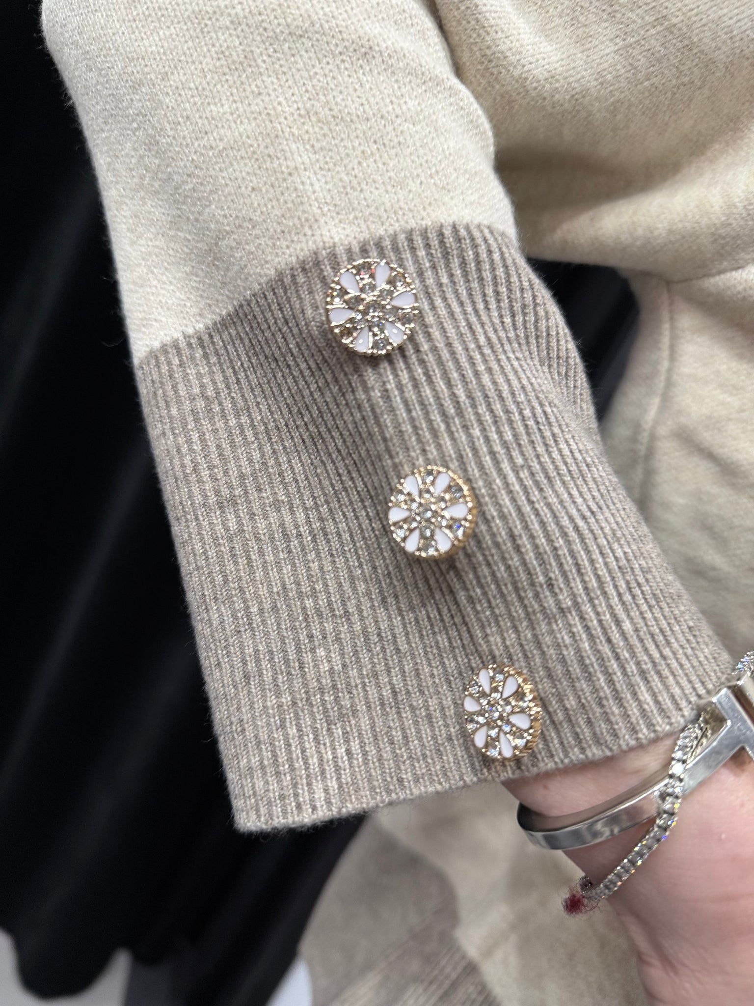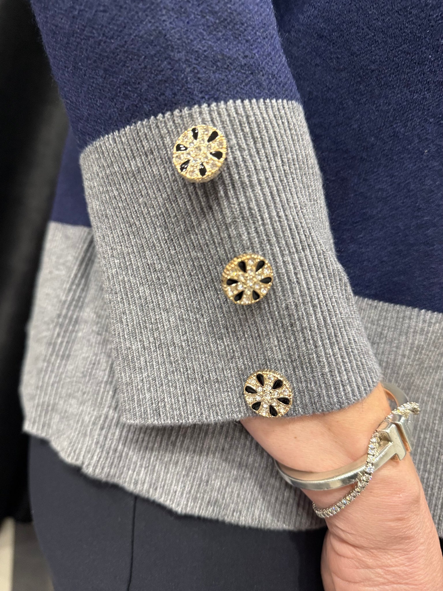 Super pretty buttons to the cuffs in gold, diamanté and either black or white detail.