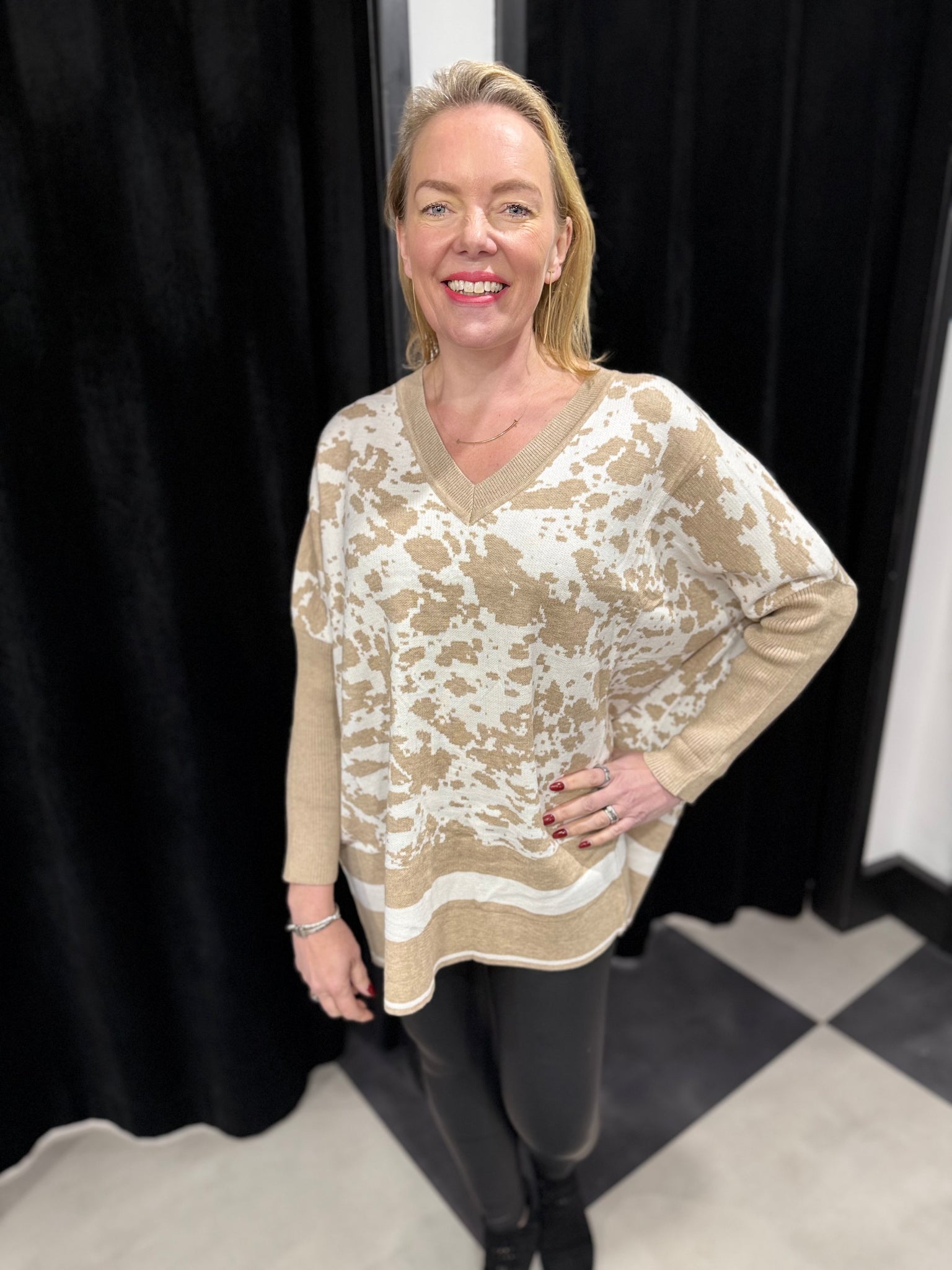 This knit has a lovely pattern which is perfect for styling for going out or even a relaxing day too. This jumper is perfect to wear with our leather look leggings or even with nice jeans. it’s so cozy for the upcoming seasons and will keep you nice and warm. One size fits all.