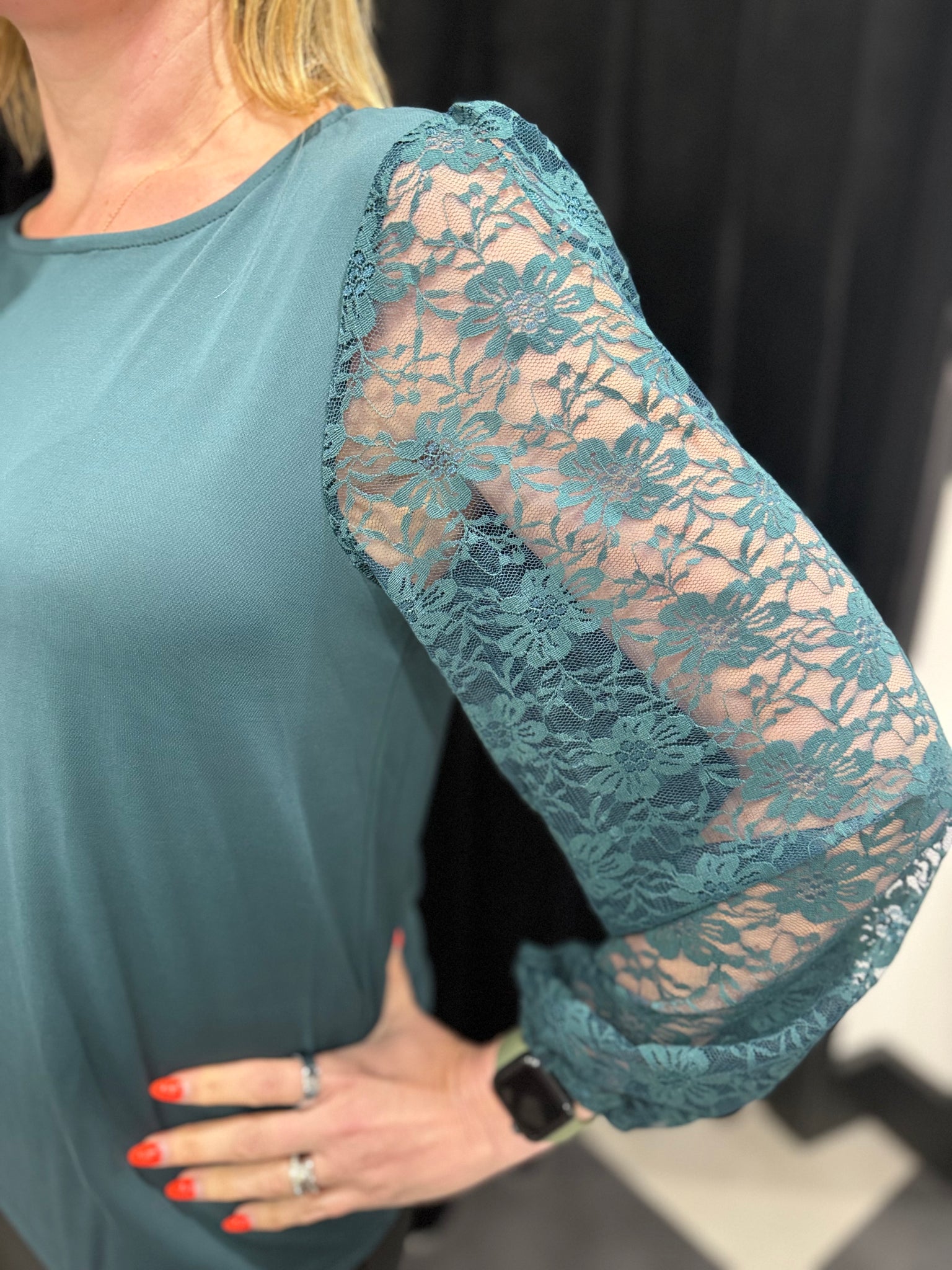 Top by Stella in a gorgeous Bottle Green colour with super soft lace long sleeves.