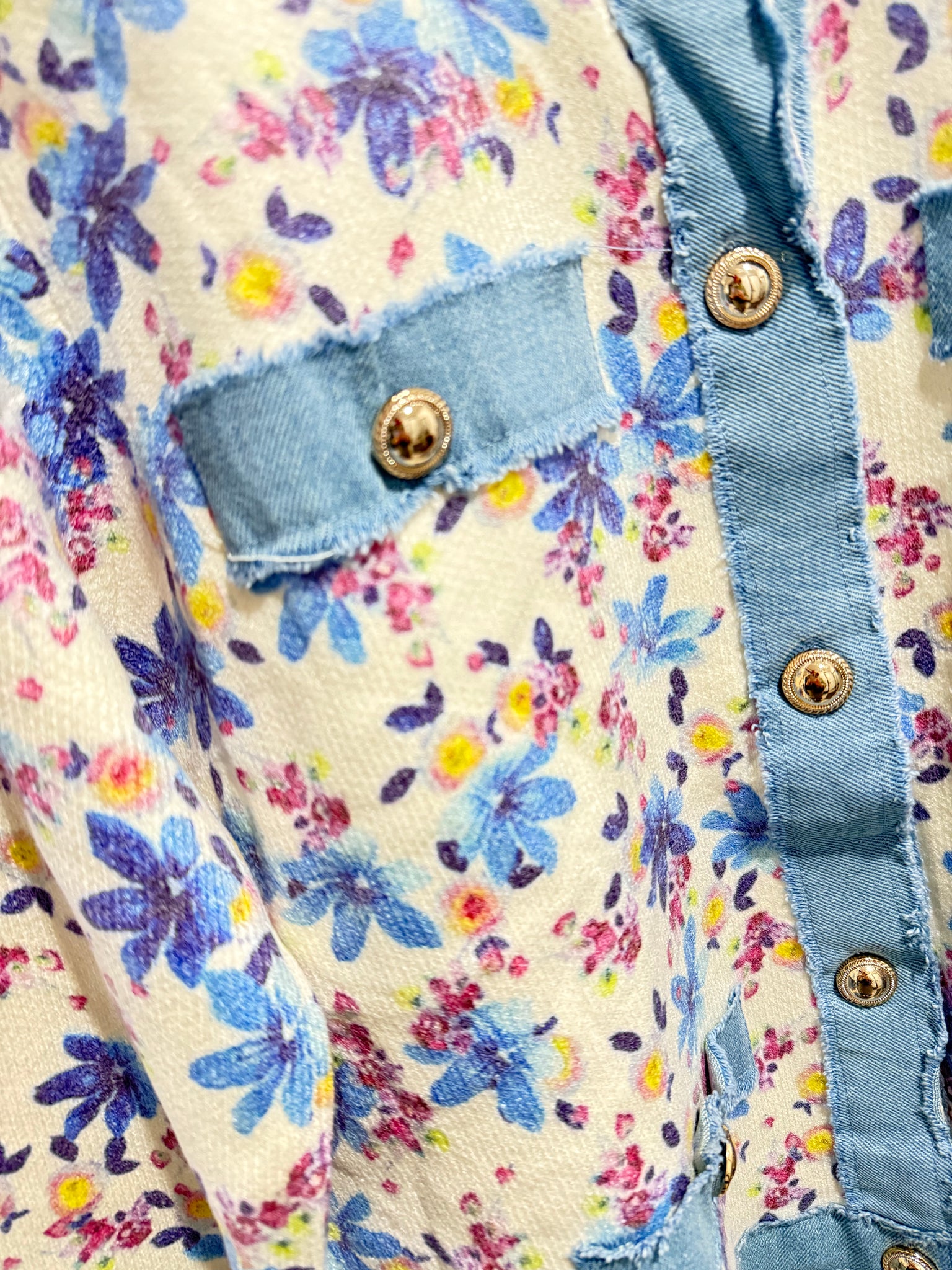 Denim Edged Floral Cardigan